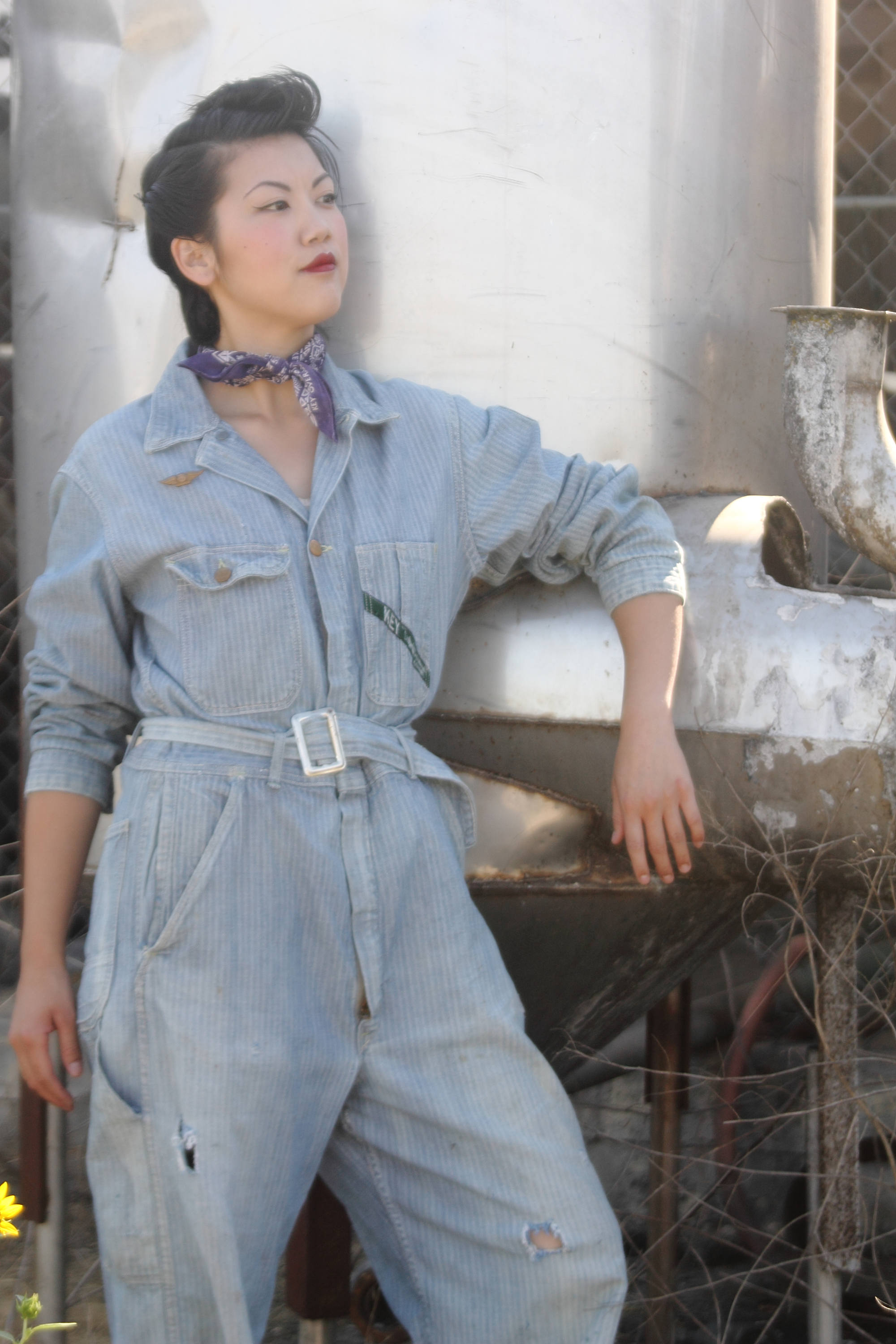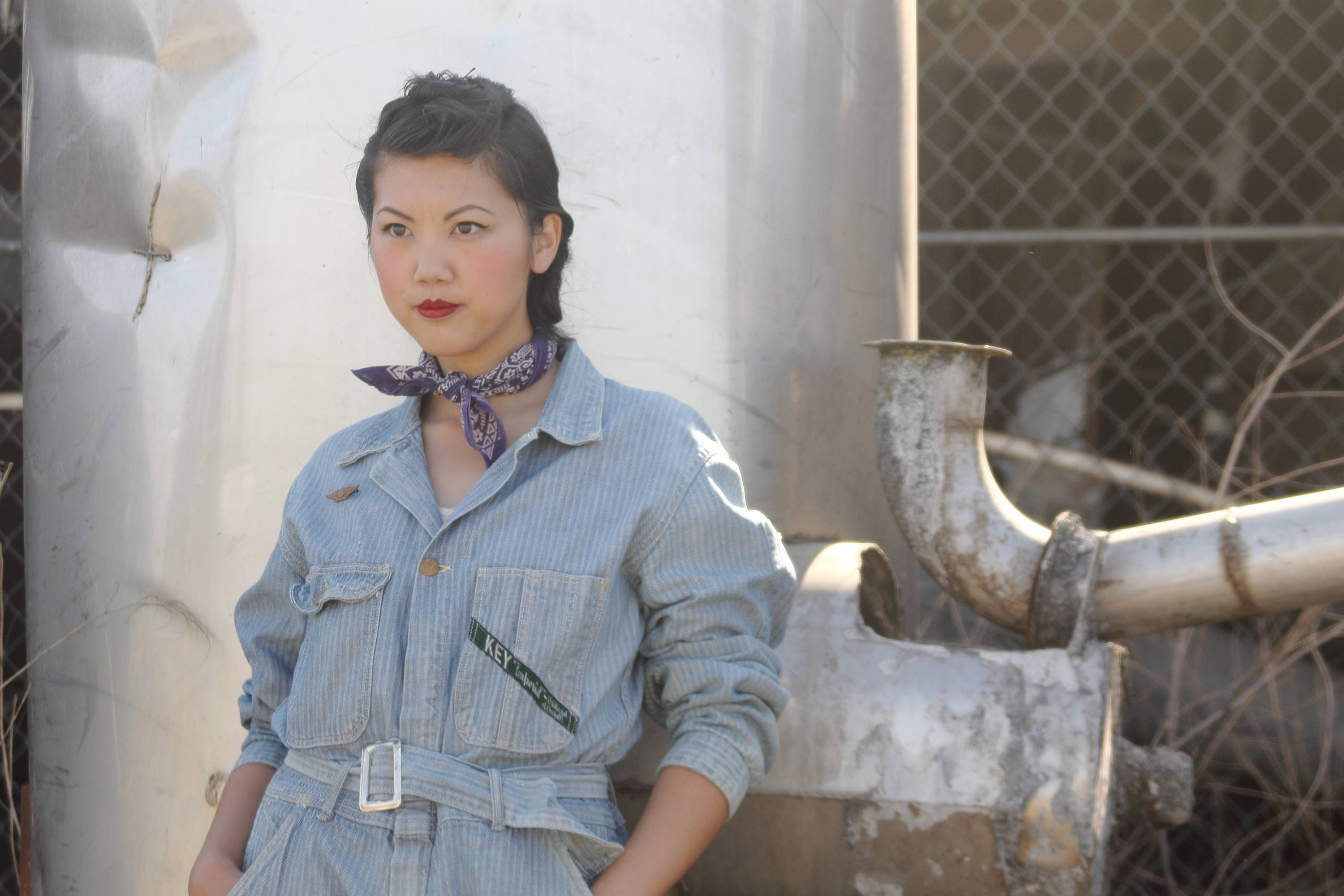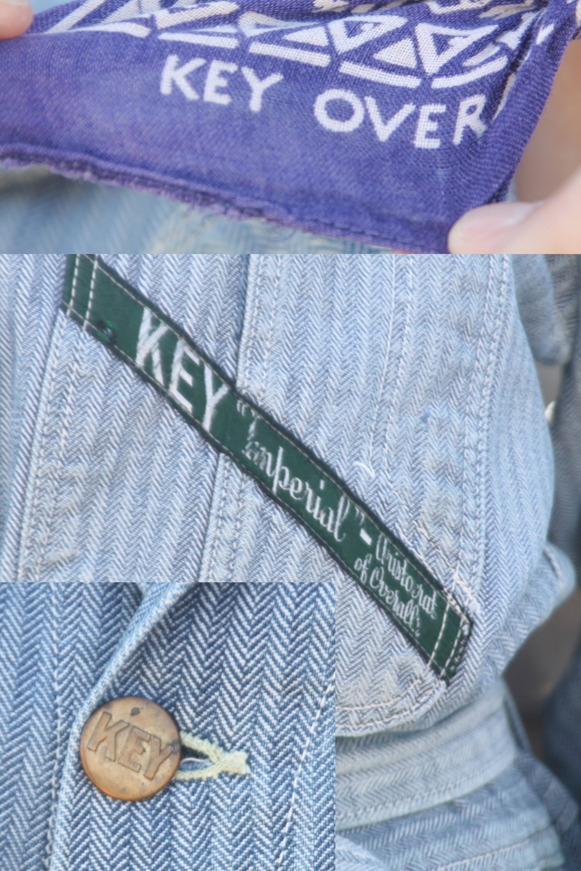 Design - Here we have a fantastic pair of herringbone Key coveralls from the 1940s (stopped using this prentice zippers in the 1950s) The 1940s is when the look of the traditional coverall began to change with a more fitted and often belted waist. This gave a more streamlined look to men and made it easy to be worn by women who were entering the workforce.