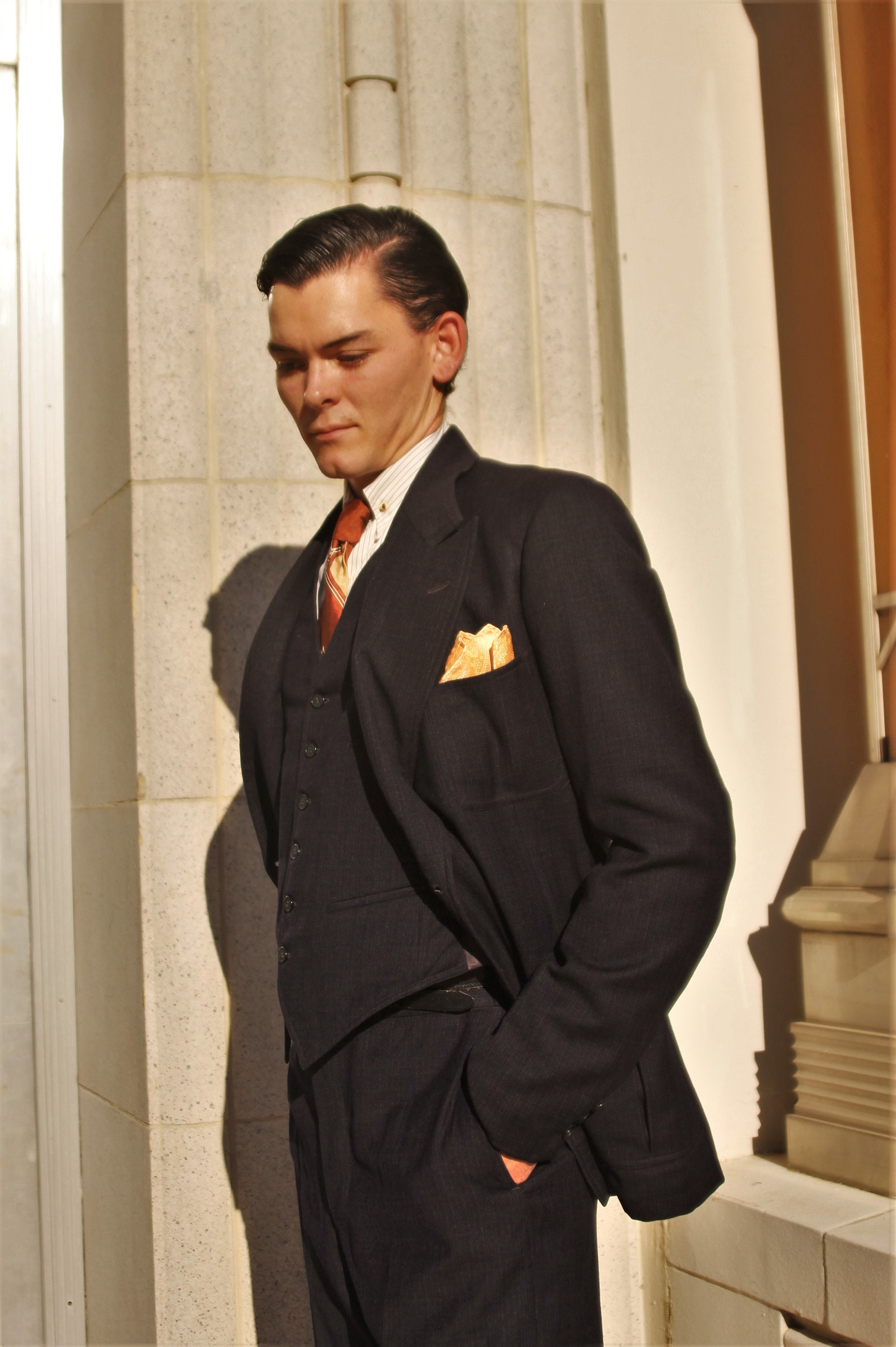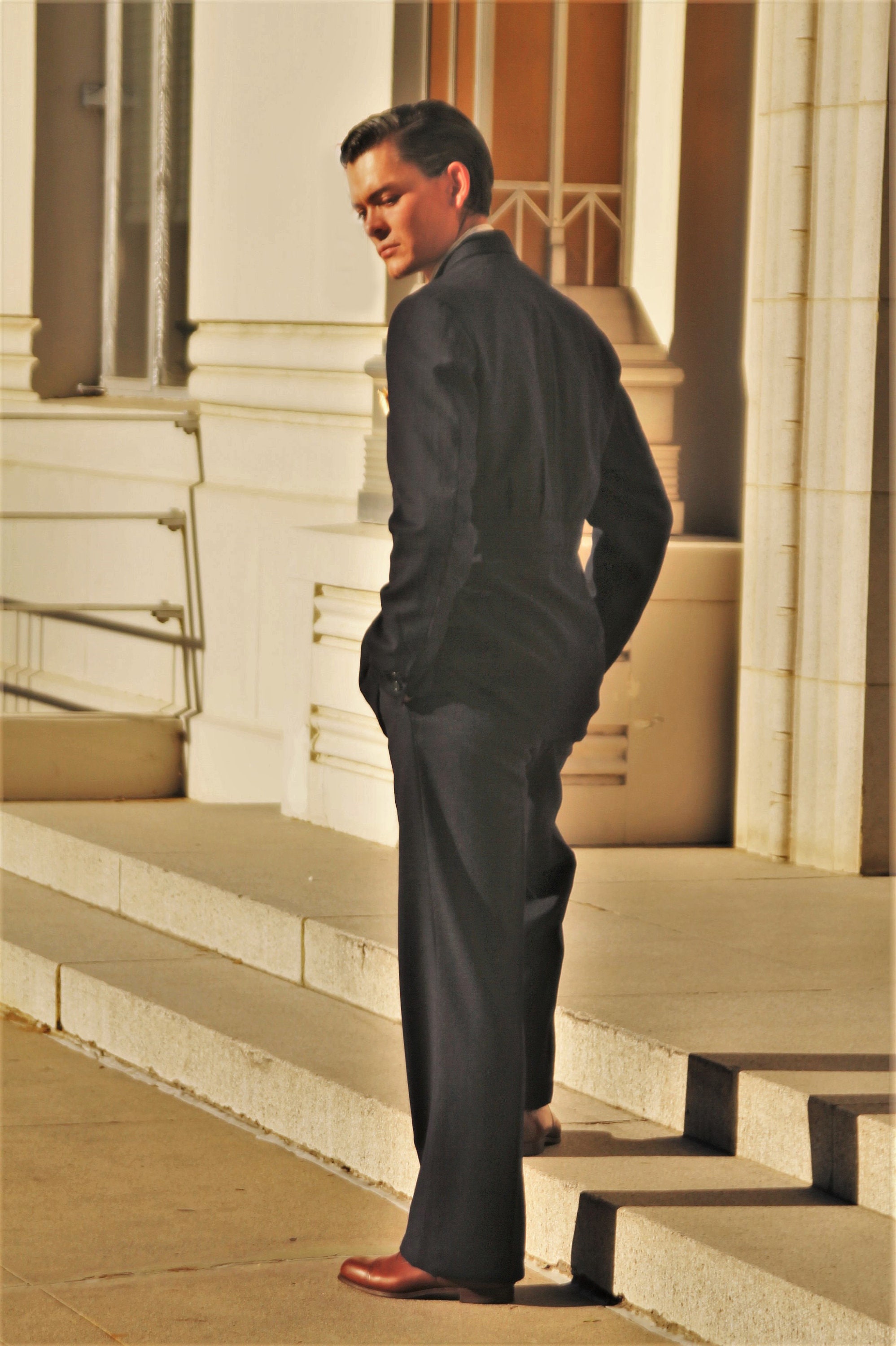 *For reference this suit was not a perfect fit for our model who is 6' and does not embody the typical fitted look of these classic 1930s suits